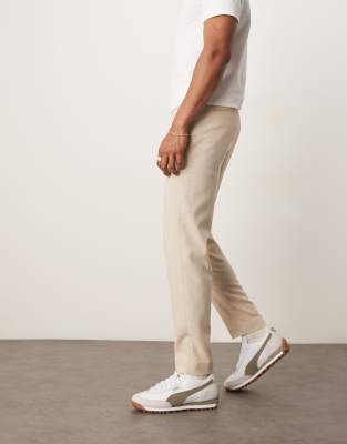 ASOS DESIGN - Nette toelopende broek van wol in licht stone