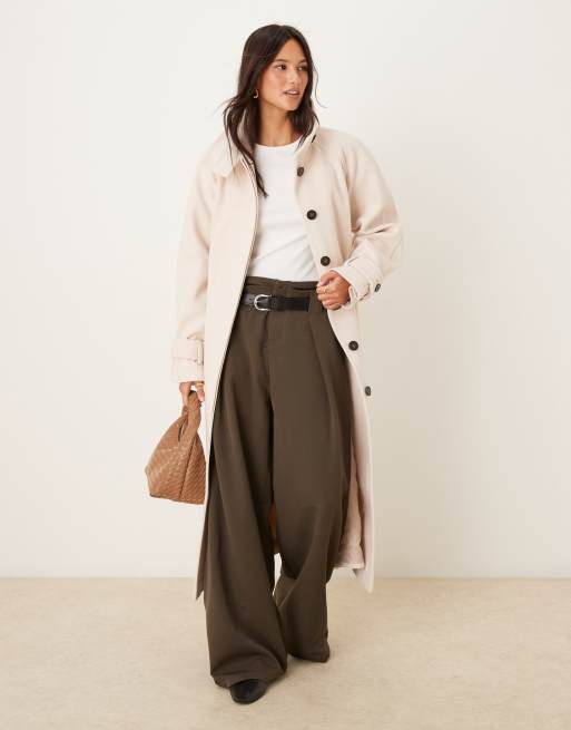 ASOS DESIGN - Nette trenchcoat met lange pasvorm en opstaande boord in lichtbeige