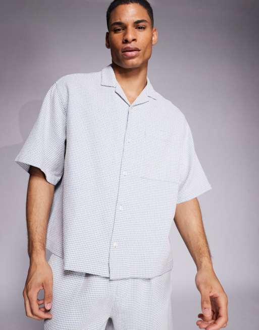 ASOS DESIGN - Normaal overhemd met wafelstructuur en reverskraag in blauw en wit, deel van co-ord set