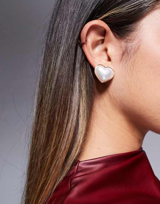 ASOS DESIGN - Oorbellen met bolle hartvorm met imitatiepareltjes in goudkleur