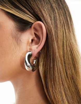 ASOS DESIGN - Oorbellen met breed, afgeschuind ontwerp in zilverkleur