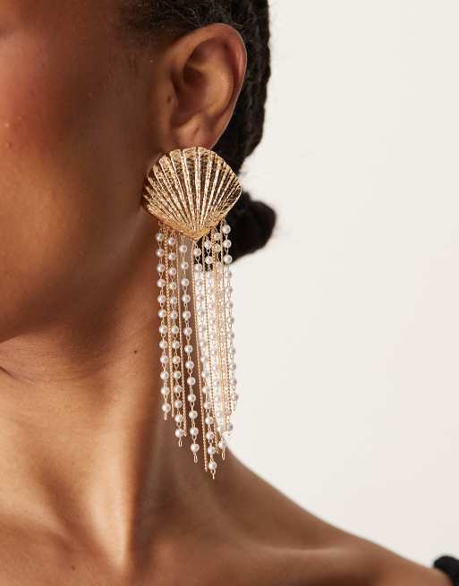 ASOS DESIGN - Oorbellen met grote schelpen en druppels met imitatieparels in goudkleur