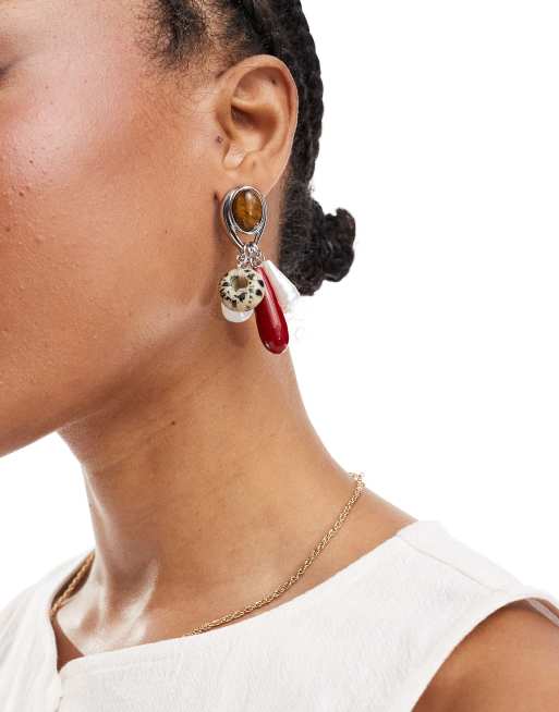 ASOS DESIGN - Oorbellen met tijgeroog en imitatiestenen in zilverkleur