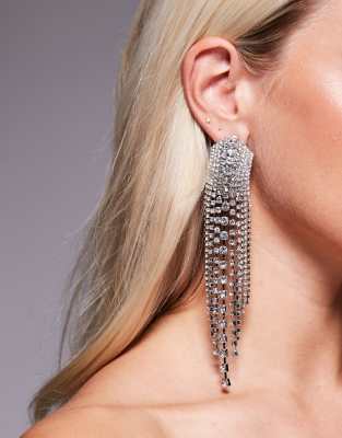 ASOS DESIGN - Oorbellen met watervalontwerp met kristallen drench-detail in zilverkleur