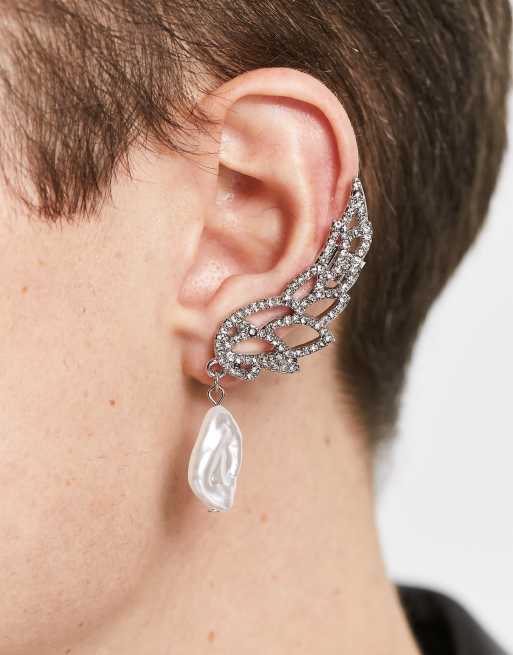ASOS DESIGN - Oorcuff met parel en kristallen in zilverkleur