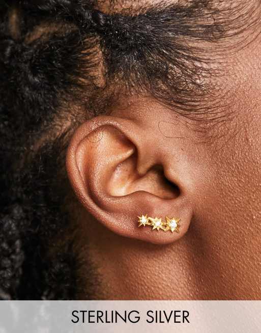ASOS DESIGN - Oorklimmer-knopjes met ontwerp van hemellichamen in verguld sterling zilver