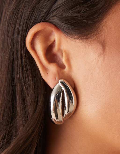 ASOS DESIGN - Oorknopjes met gevormd ovaalontwerp in zilverkleur