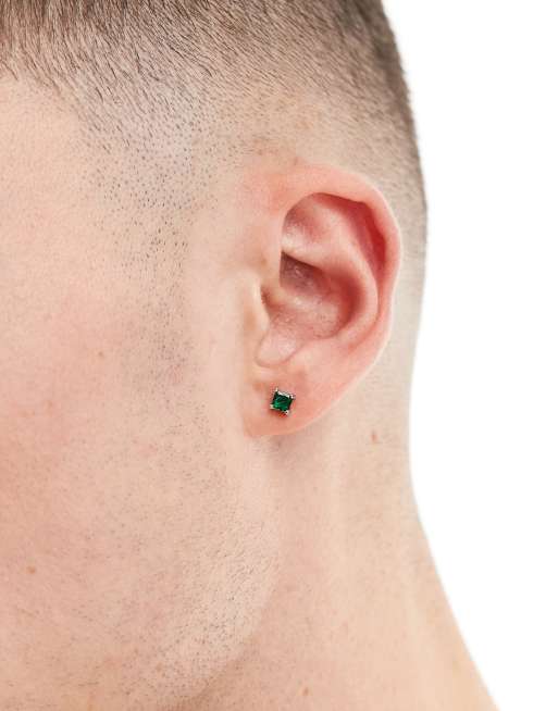 ASOS DESIGN - Oorknopjes met groene kristallen in zilver
