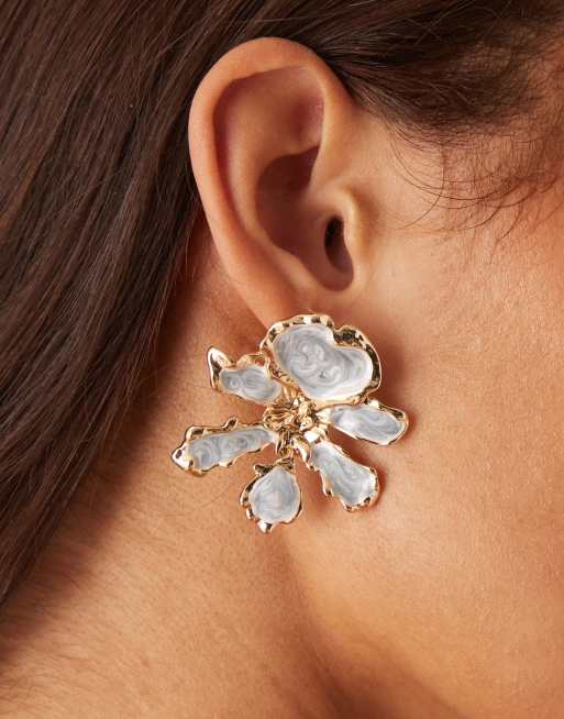 ASOS DESIGN - Oorknopjes met ontwerp van blauwe bloemen en goudkleurige details