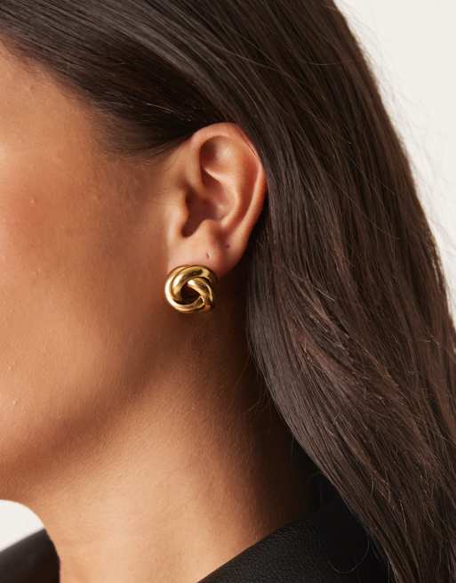 ASOS DESIGN - Oorknopjes van waterbestendig roestvrij staal met geknoopt ontwerp in goudkleur