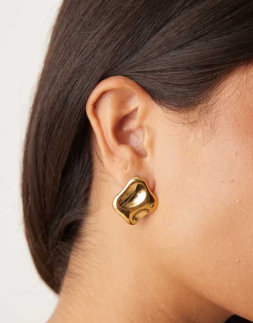 ASOS DESIGN - Oorknopjes van waterbestendig roestvrij staal met gesmolten ontwerp in goudkleur