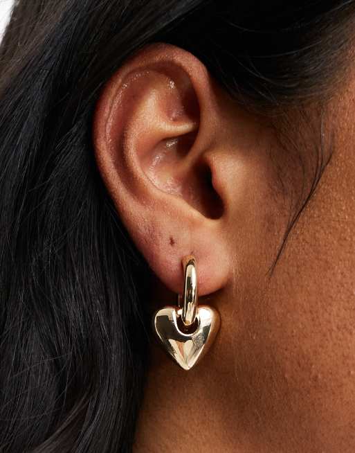 ASOS DESIGN - Oorringen met bol harthangertje in goudkleur