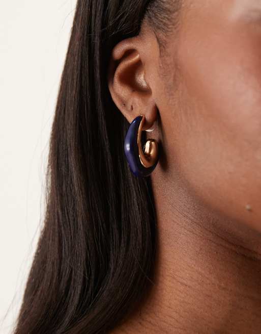 ASOS DESIGN - Oorringen met krullend ontwerp en blauw harsdetail in goudkleur