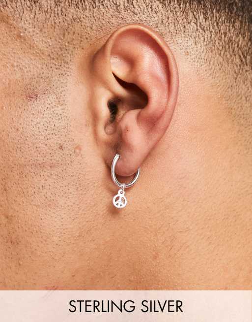 ASOS DESIGN - Oorringen van sterling zilver met peace-hangertje