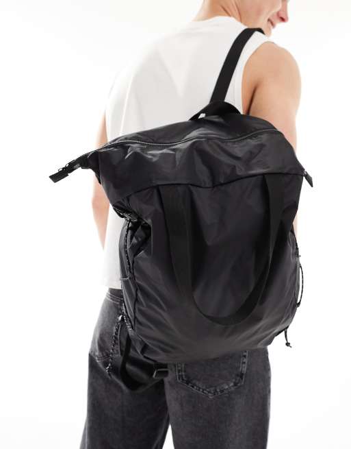 ASOS DESIGN - Opvouwbare rugzak en tote tas met koordbandjes in zwart
