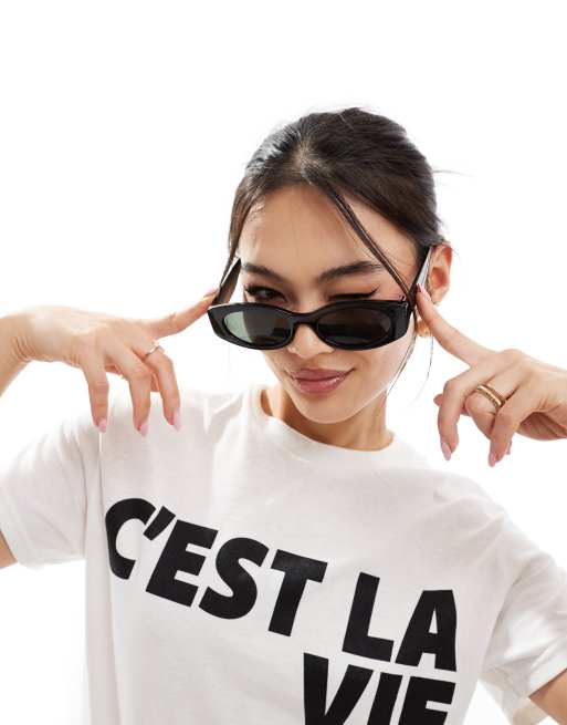 ASOS DESIGN - Ovale zonnebril in zwart