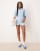 ASOS DESIGN - Overhemd met broderie kant, textuur en knopen in blauw, deel van co-ord set