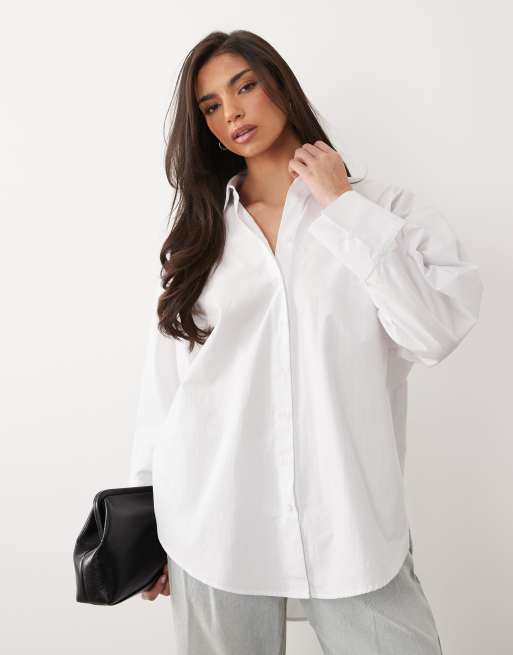 ASOS DESIGN - Overhemd met lange pasvorm en gestrikte voorkant in wit