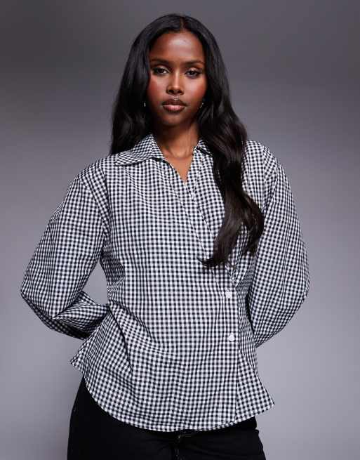 ASOS DESIGN - Overhemd met overslag en cocoon-mouwen in zwarte en witte gingham ruit