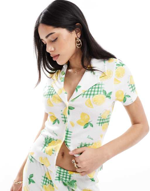ASOS DESIGN - Overhemd met wafeltextuur en citroenprint