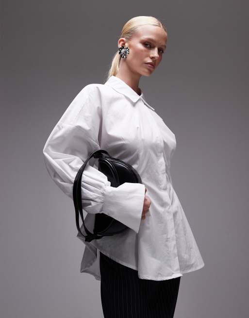ASOS DESIGN - Overhemd van popeline met aangerimpelde rug en gespdetail in wit
