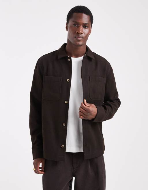 ASOS DESIGN - Overshirt met wollook in bruin en ecru