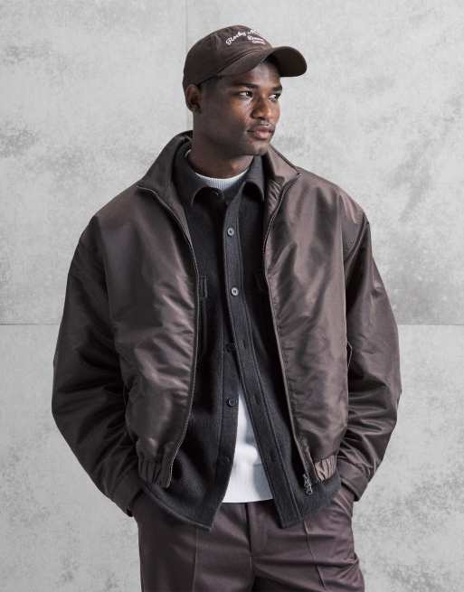 ASOS DESIGN - Oversized bomberjack met opstaande boord in bruin