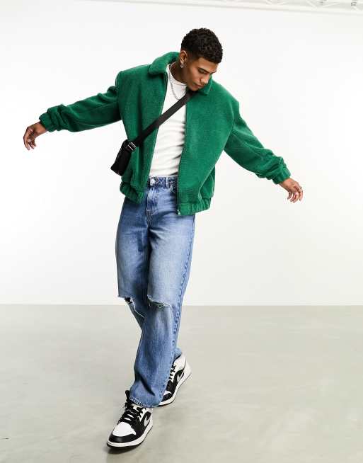 ASOS DESIGN - Oversized bomberjack van borg met opstaande boord in donkergroen