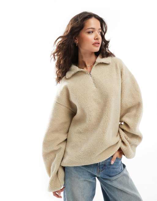 ASOS DESIGN - Oversized borgfleece met halve rits in neutraal