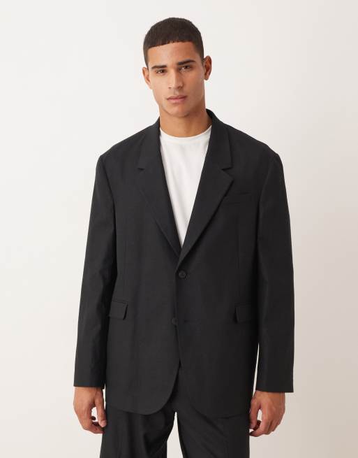 ASOS DESIGN - Oversized colbert van linnenmix in zwart