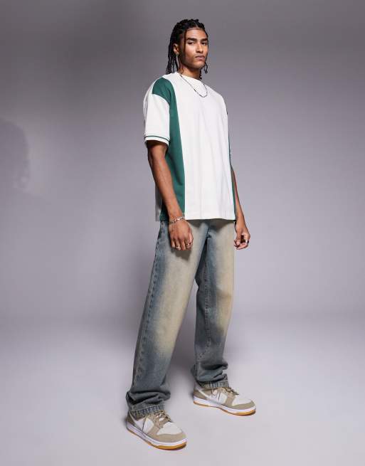 ASOS DESIGN - Oversized colour block T-shirt in crème en groen