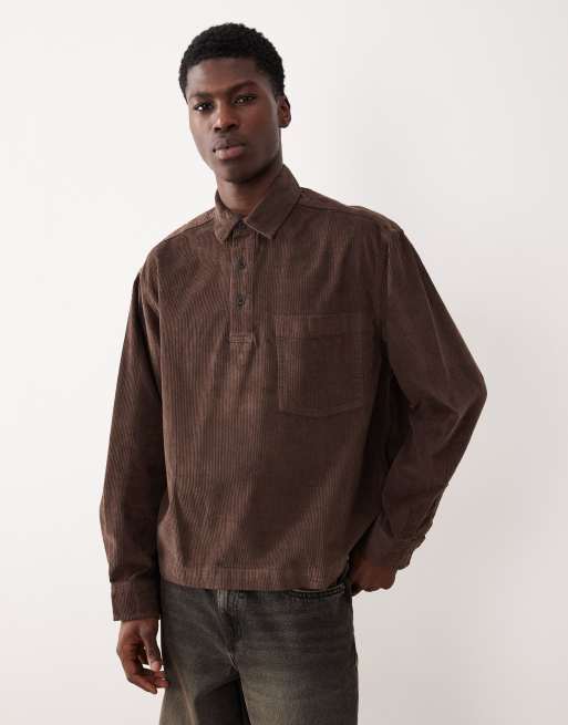 ASOS DESIGN - Oversized corduroy overhemd zonder sluiting in bruin