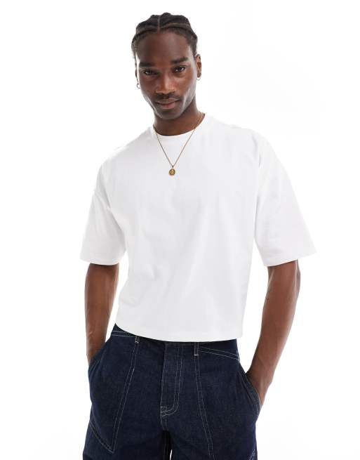 ASOS DESIGN - Oversized cropped recht T-shirt van 240g/m² zware stof met verlaagde schouders in wit