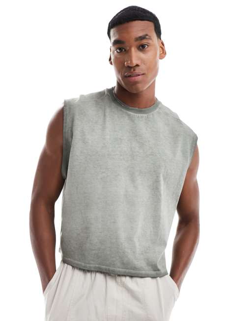 ASOS DESIGN - Oversized cropped tankhemd in donkergrijs