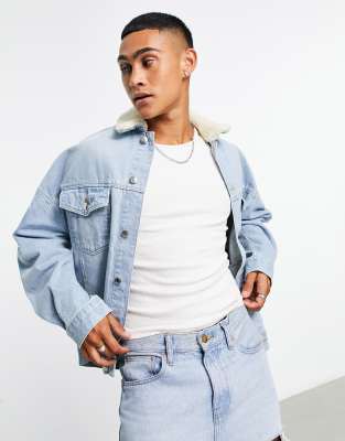 ASOS DESIGN - Oversized denim jas in lichte wassing met borgkraag
