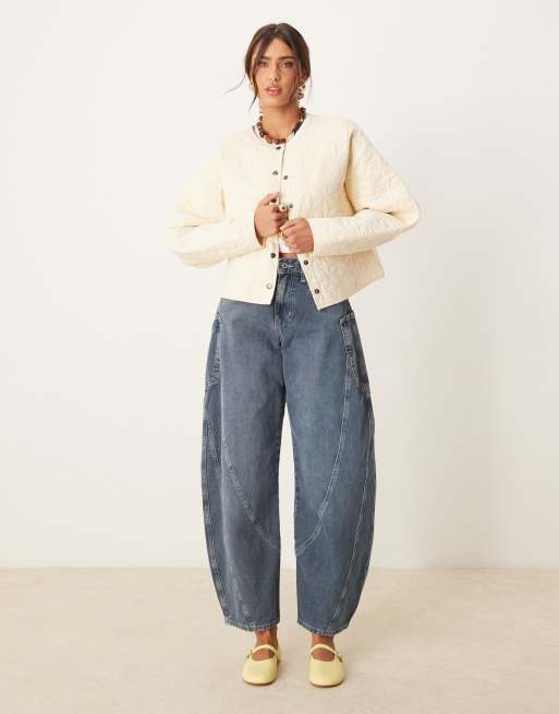 ASOS DESIGN - Oversized doorgestikt jack met cocoonmouwen in crème met wassing