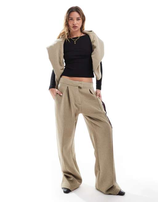 ASOS DESIGN - Oversized elegante joggingbroek met siernaden in gemêleerd kaki