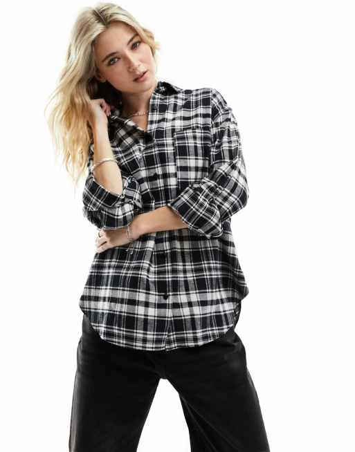 ASOS DESIGN - Oversized geborsteld geruit overhemd in zwart-wit