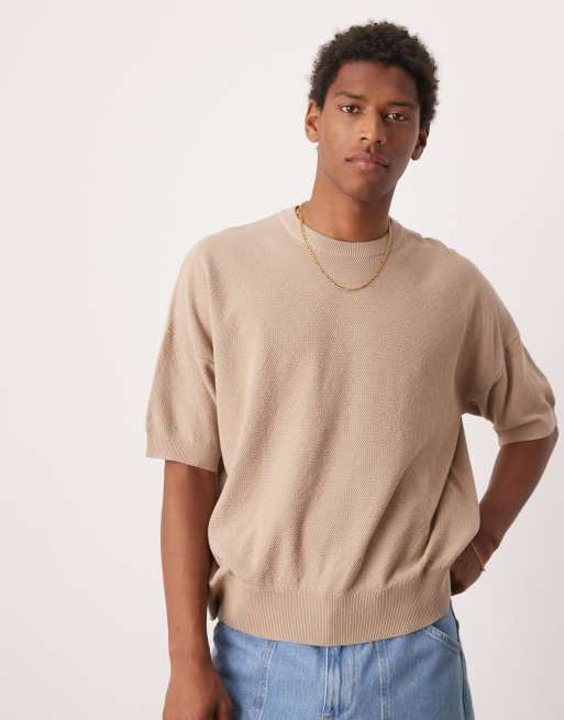 ASOS DESIGN - Oversized gebreid T-shirt met piqué textuur in stone