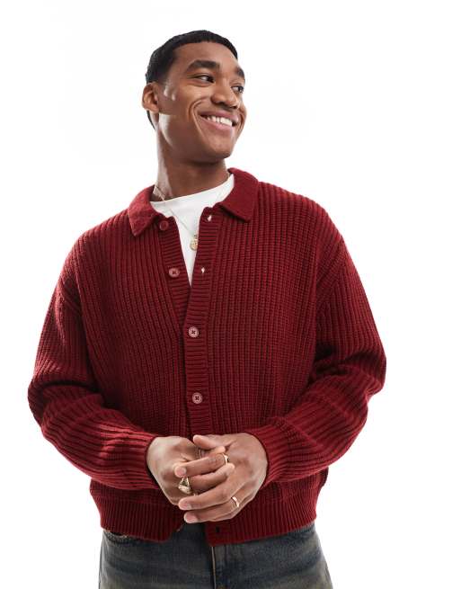 ASOS DESIGN - Oversized gebreid vest van zware wolmix met knoopsluiting in bordeauxrood