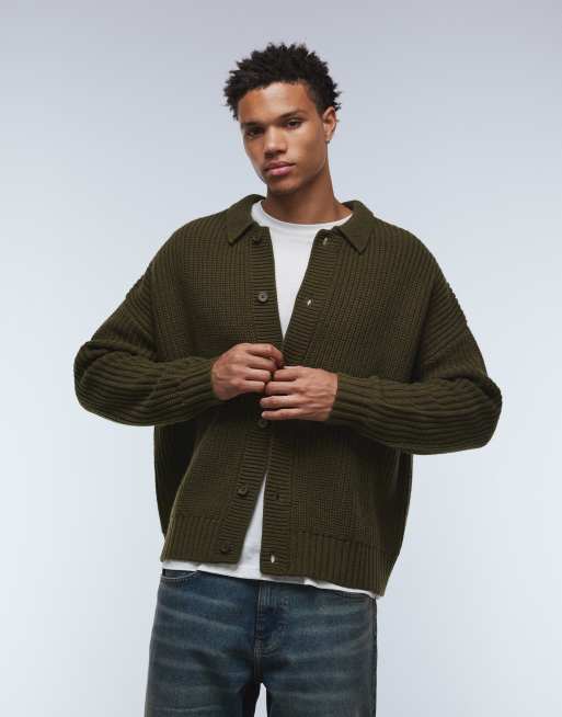 ASOS DESIGN - Oversized gebreid vest van zware wolmix met rechte pasvorm in kaki