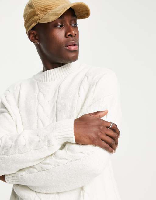 ASOS DESIGN - Oversized gebreide trui met kabels in wit