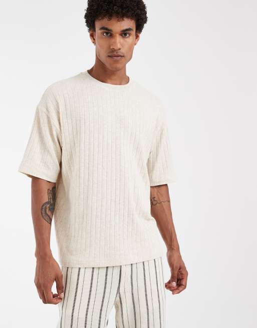 ASOS DESIGN - Oversized geribbelde polo met linnenlook in beige