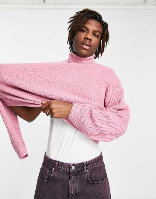 ASOS DESIGN - Oversized geribbelde visserstrui met col in gemêleerd roze