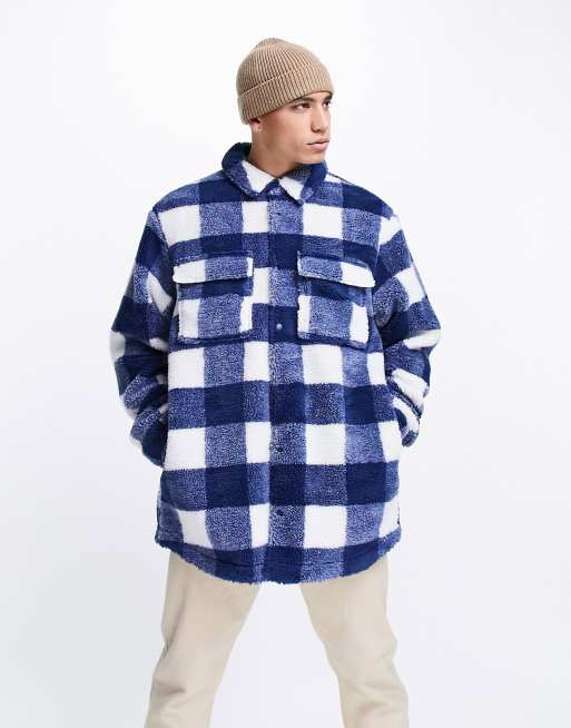 ASOS DESIGN - Oversized geruite shacket in marineblauw
