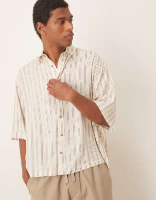 ASOS DESIGN - Oversized gestreept overhemd in stone