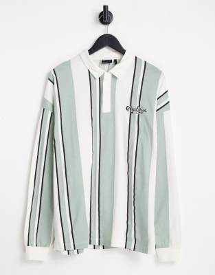 ASOS DESIGN - Oversized gestreept poloshirt met lange mouwen en Memphis-stadsprint in groen