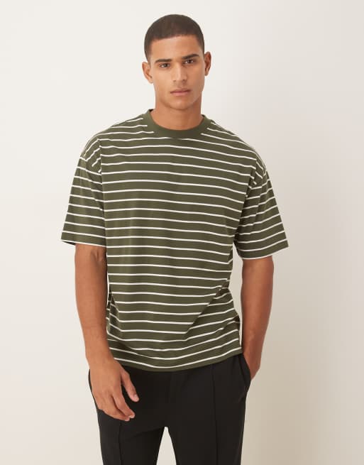 ASOS DESIGN - Oversized gestreept T-shirt in donkergroen en ecru