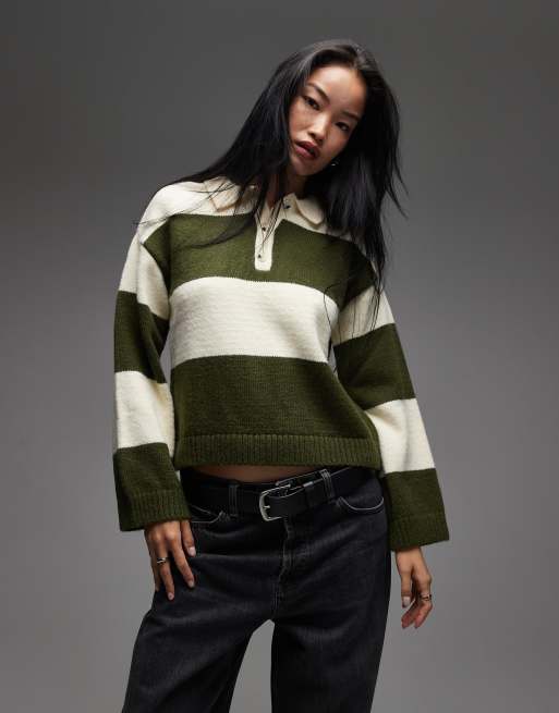 ASOS DESIGN - Oversized gestreepte gebreide rugbytop in groen