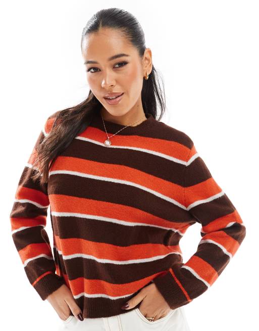 ASOS DESIGN - Oversized gestreepte trui in bruin en bordeauxrood